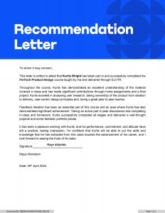 A personal letter of recommendation provided by Maya Weinstein, Klarna’s Design Director and course lecturer: